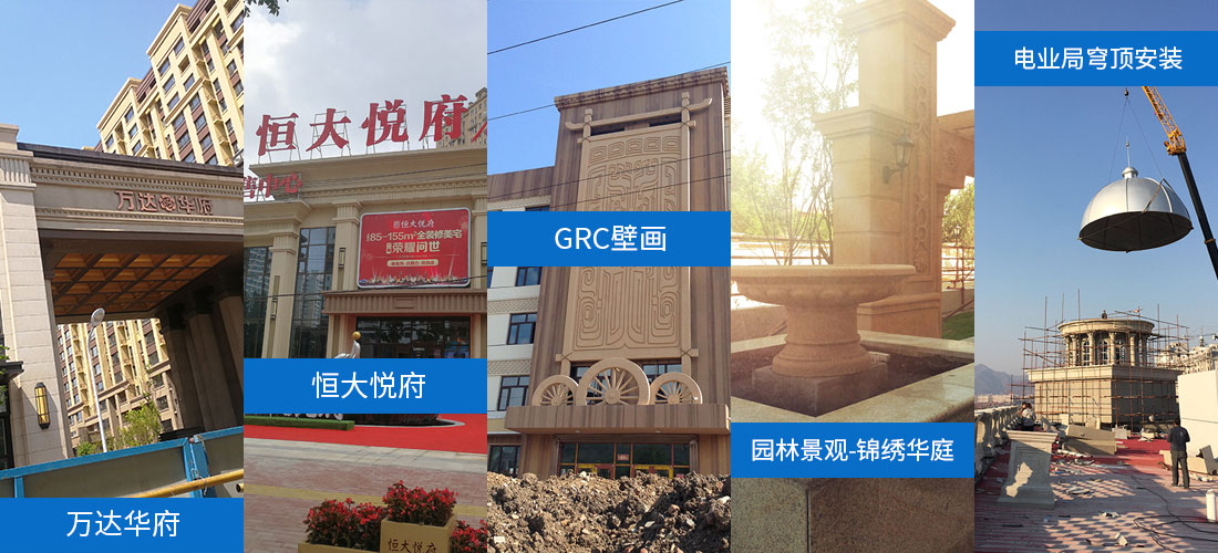 本企業(yè)的產(chǎn)品被廣泛應用于建筑室內(nèi)及外墻的裝飾、裝修工程和市政、園林景觀的造景等。主要產(chǎn)品有檐線、門窗裝飾線、穹頂、扶手墩、山花、浮雕裝飾板、中式西式的傳統(tǒng)裝飾、歐式羅馬裝飾柱、仿蘑菇石、仿剁斧石、仿干粘石、假山、噴泉、圓雕、藝術壁畫、外墻掛板、室內(nèi)石膏線、燈盤、浮雕、羅馬柱等。均可根據(jù)客